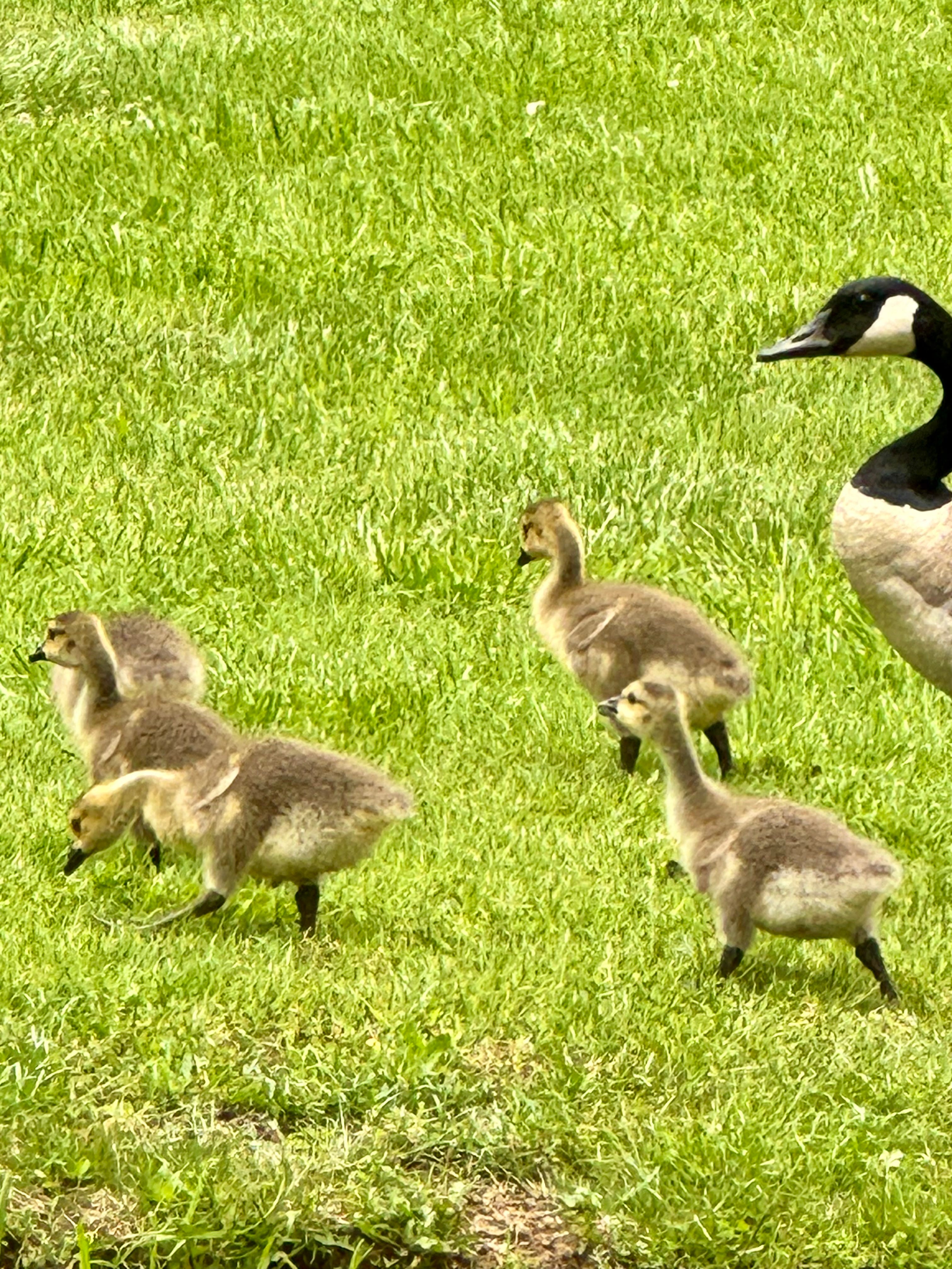 The geese graze and lounge in the same pasture where my ponies are grazing, and they all seem to get along fine. The geese aren’t wary of the ponies around their goslings, and the ponies give the goslings a respectable amount of distance. If these animals of different species can exist in harmony with each other, surely we can too. Not that their relationship was always smooth sailing. Our mare, in her first year with us, was not thrilled with a goose that she deemed a threatening incursion into her pasture. Goldie (the mare) and the goose engaged in an epic face-off and stare-down, each advancing a step at a time on the other. When the goose decided it had made its point, it flew off, ceding the pasture to Goldie, for the time being. I don’t know what they communicated to each other, but it ended amicably, and Goldie and our other two ponies have welcomed the geese and many broods of goslings to their pastures ever since.
